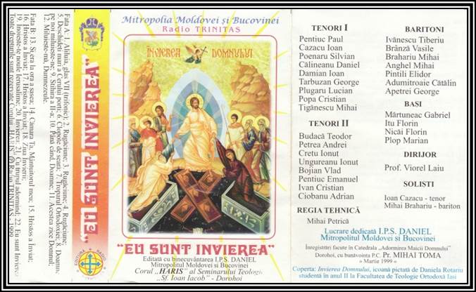 -Corul „Haris” a înregistrat două casete audio, conţinând răspunsurile la „Sfânta Liturghie” din Duminica a-II-a a Postului Mare, oficiată de ÎPS Dr. DANIEL, Mitropolitul Moldovei şi Bucovinei, în Catedrala Mitropolitană din Iaşi.