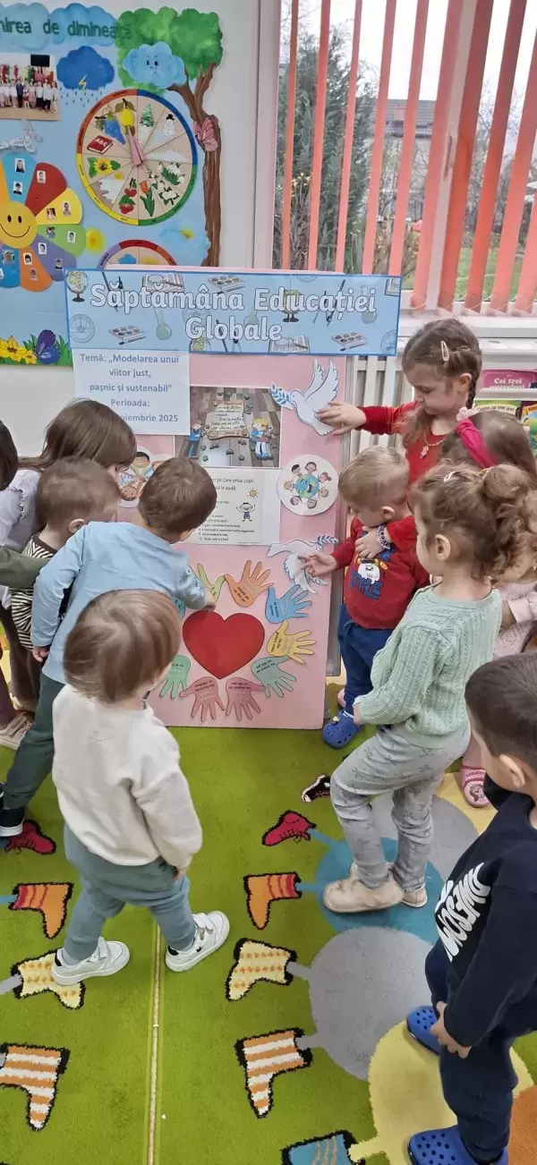Săptămâna s-a încheiat cu prezentarea rezultatelor proiectului, când toate lucrările copiilor au fost reunite într-o expoziție ce a adus un plus de culoare și emoție în grădiniță. Această inițiativă a evidențiat nu doar creativitatea și sensibilitatea lor, ci și faptul că, încă de la cele mai fragede vârste, copiii pot înțelege și aprecia importanța unor valori fundamentale pentru o lume mai bună. Săptămâna Educației Globale a devenit astfel un prilej minunat de învățare, conectare și creștere.
