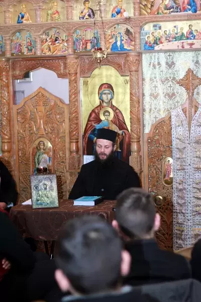 Pe data de 9 decembrie, în paraclisul Seminarului “Sf. Ioan Iacob” din Dorohoi a avut loc o întâlnire, deosebit de frumoasă, organizată în cadrul orelor de Convorbiri duhovniceşti, avându-l ca invitat pe Părintele arhim. Ioan Harpa, stareţul Mănăstirii Popăuţi şi exarh de zonă Botoşani al Arhiepiscopiei Iaşilor. Tema propusă ca subiect de meditaţie a fost „Sf. Spovedanie – Taină a morţii şi învierii cu Hristos şi în Hristos” a oferit cadrelor didactice şi elevilor seminarişti participanţi, câteva repere, izvorâte din experienţa ca duhovnic a părintelui Ioan, care a precizat în debutul cuvântării că „Taina Pocăinţei reprezintă o necesitate sufletească pentru creştinul care caută să-şi curăţească sufletul de patimi, pentru a deveni peşteră binecuvântată în care să se nască Hristos Domnul şi că preotul duhovnic este povăţuitor şi tămăduitor al bolilor care vatămă firea omului, dar, mai ales devine prietenul care ne însoţeşte cu sfatul şi rugăciunea, în călătoria noastră spre Împărăţia cea cerească a Pruncului Hristos.” În cadrul discuţiilor purtate cu tinerii seminarişti, Părintele stareţ a răspuns punctual la mai multe întrebări care au vizat încercările prin care trec elevii la vârsta adolescenţei, importanţa luptei cu patimile, modul în care păcatul ca realitate existenţială orbeşte vederea duhovnicească a lucrării lui Dumnezeu în lume şi în viaţa personală, pregătirea tinerilor pentru primirea Tainei Spovedaniei în Postul Naşterii Domnului. Dialogul duhovnicesc a fost prilej de aducere aminte a unor momente memorabile din istoria Bisericii, din viaţa şi povăţuirile unor mari părinţi, binecuvântaţi de Dumnezeu pentru viaţa aspră de nevoinţă, cu mari harisme şi bucurii sufleteşti, cu evocări nostalgice, dar cu multă încărcătură spirituală din copilăria şi din viaţa invitatului,ca student la Institutul Teologic de la Sibiu, multe dintre ele fiind legate de postului Crăciunului, timp sfânt al întoarcerii spre Dumnezeu şi spre familie. În încheiere, elevii seminarişti au fost îndemnaţi să se asemene magilor de la răsărit, care au adus daruri Pruncului dumnezeiesc, dar care s-au întors în ţara lor pe altă cale, ocolindu-l pe Irod, (simbol al păcatului) şi să fie vestitori prin colinde, a bucuriei Naşterii Mântuitorului, în familiile lor şi în parohiile în care își vor desfăşura practica liturgică în timpul vacanţei de iarnă.