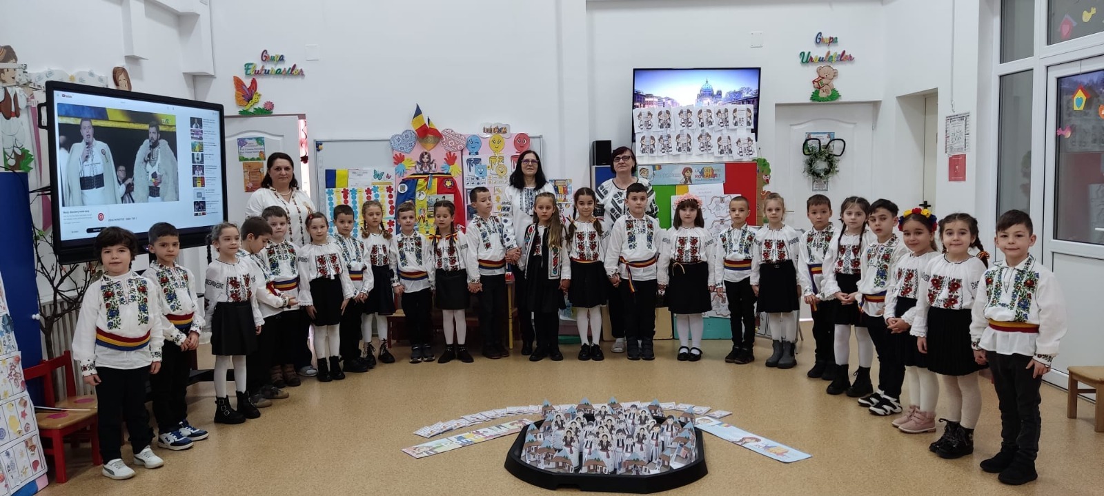 În preajma Zilei Naționale a României, Grădinița cu Program Prelungit Nr. 6 structură a Seminarului Teologic Liceal Ortodox ,,Sfântul Ioan Iacob” Dorohoi, a găzduit o activitate de suflet, intitulată „Români mici cu inimi mari”, menită să le ofere celor mici prilejul de a înțelege și simți emoția zilei de 1 Decembrie. Evenimentul a fost cu atât mai special cu cât, în mijlocul preșcolarilor, s-au aflat și elevii clasei pregătitoare B de la Școala Gimnazială „Spiru Haret” îndrumați de doamnele prof. Lepărdă Carmen și prof. Baboi Luminița, veniți în vizită pentru a împărtăși clipe de bucurie șivoie bună. Cadrele didactice au povestit copiilor, pe înțelesul lor, despre semnificația Zilei Naționale a României. Preșcolarii au ascultat cu interes poveștile despre trecutul țării, iar întrebările și curiozitatea lor au arătat, încă o dată, cât de ușor se aprinde în sufletele copiilor dragostea pentru patrie atunci când aceasta este transmisă cu răbdare și căldură.