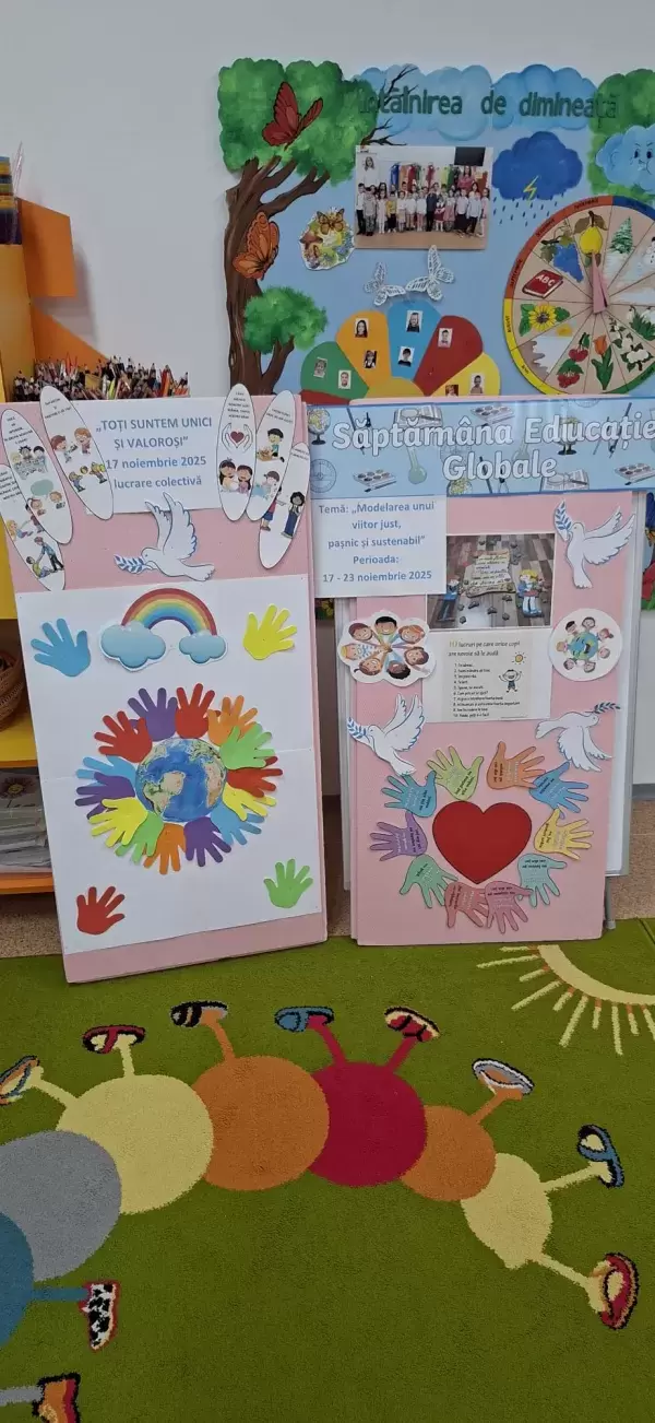 Săptămâna s-a încheiat cu prezentarea rezultatelor proiectului, când toate lucrările copiilor au fost reunite într-o expoziție ce a adus un plus de culoare și emoție în grădiniță. Această inițiativă a evidențiat nu doar creativitatea și sensibilitatea lor, ci și faptul că, încă de la cele mai fragede vârste, copiii pot înțelege și aprecia importanța unor valori fundamentale pentru o lume mai bună. Săptămâna Educației Globale a devenit astfel un prilej minunat de învățare, conectare și creștere.