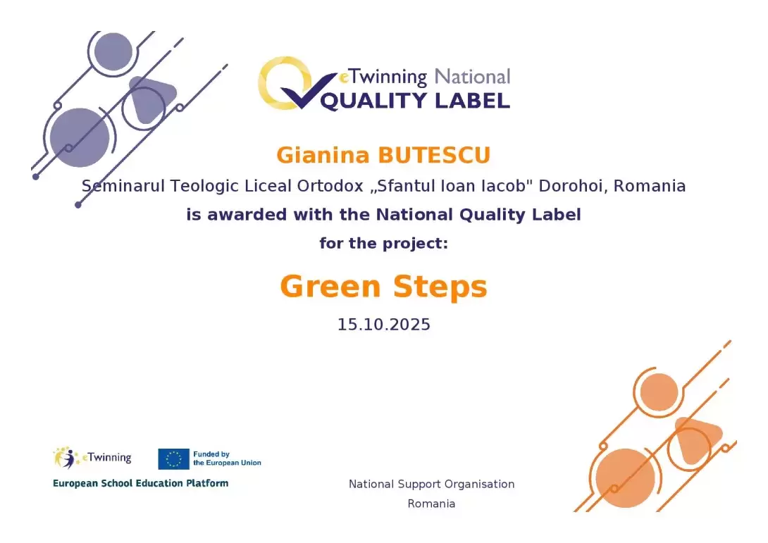 Proiectul eTwinning "Green Steps" desfășurat de Seminarul Teologic Liceal Ortodox „Sfântul Ioan Iacob” Dorohoi, în parteneriat cu școli din Turcia și Grecia, își propune să contribuie la protejarea resurselor naturale, să promoveze sustenabilitatea mediului prin crearea de conștientizare a mediului în rândul elevilor și prin răspândirea comportamentelor ecologice. Proiectul a demonstrat că implicarea, colaborarea și dorința de a învăța pot conduce la rezultate de excelență.